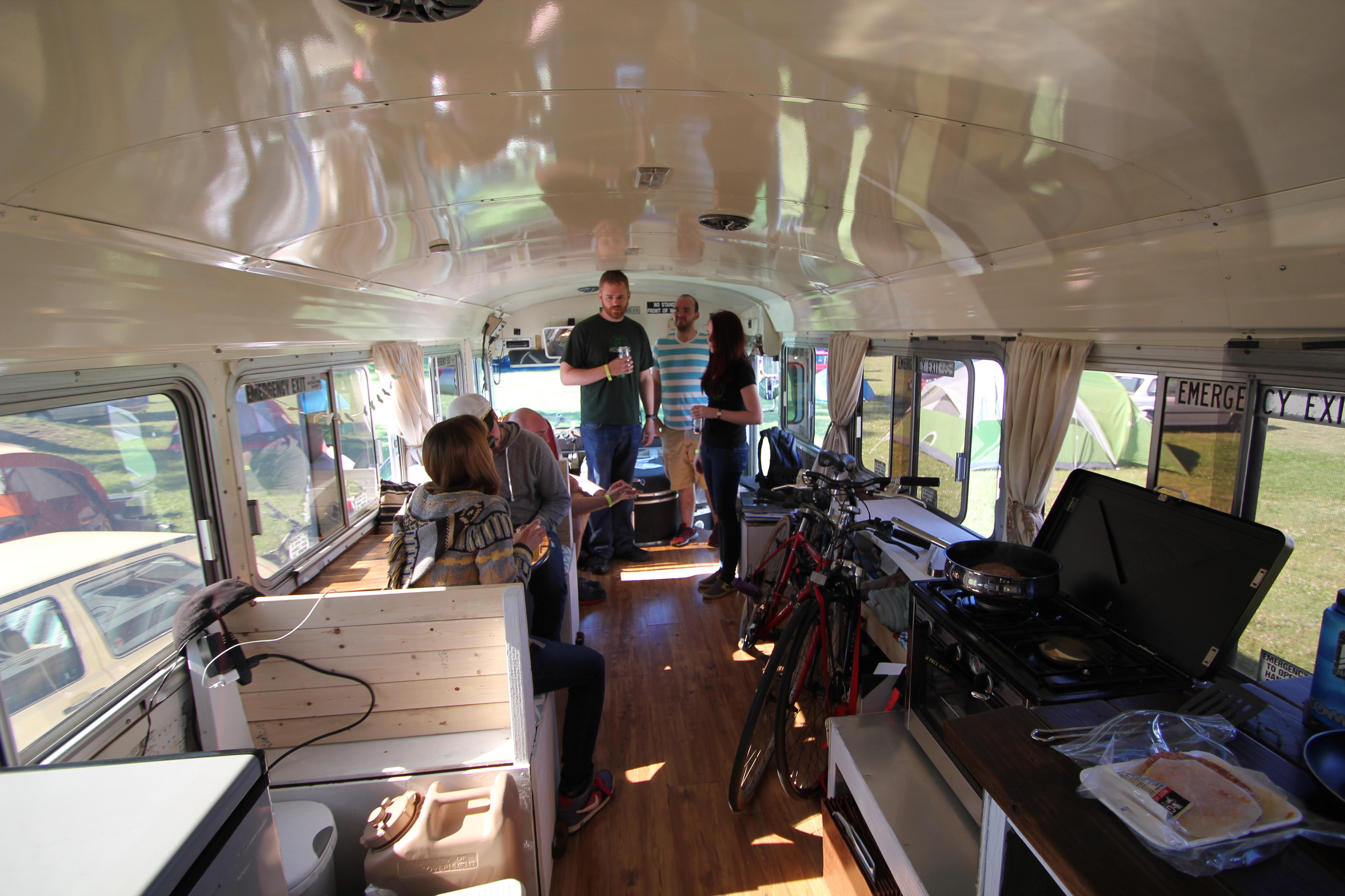 Campobello Island is a tiny little place, roughly nine miles long and three miles across at its widest point. Driving up the main road crossing the island we were so excited to be there, and were anxious to meet our host. As we rounded a bend we were greeted by lines of people on either side of the road, and a long line of traffic. We soon realized that the long line of traffic was actually a parade, and we were right at the tail end. People were cheering and waving at us, and we could hear them talking about the bus, everyone seemed to love it! Or they thought we were crazy. As we slowly idled along I opened the entrance door and started talking with an older guy who was waving at us. He hopped up on the front steps and poked his head in, marveling at our interesting interior. We quizzed him and found out that it was Canada Day! And we were just in time for the parade. It was a very exciting entrance to the island, how lucky of us to come in at just the right time. Before too long the procession turned right and we turned left, heading over to Welschpool, where we found our home for the next couple of nights.