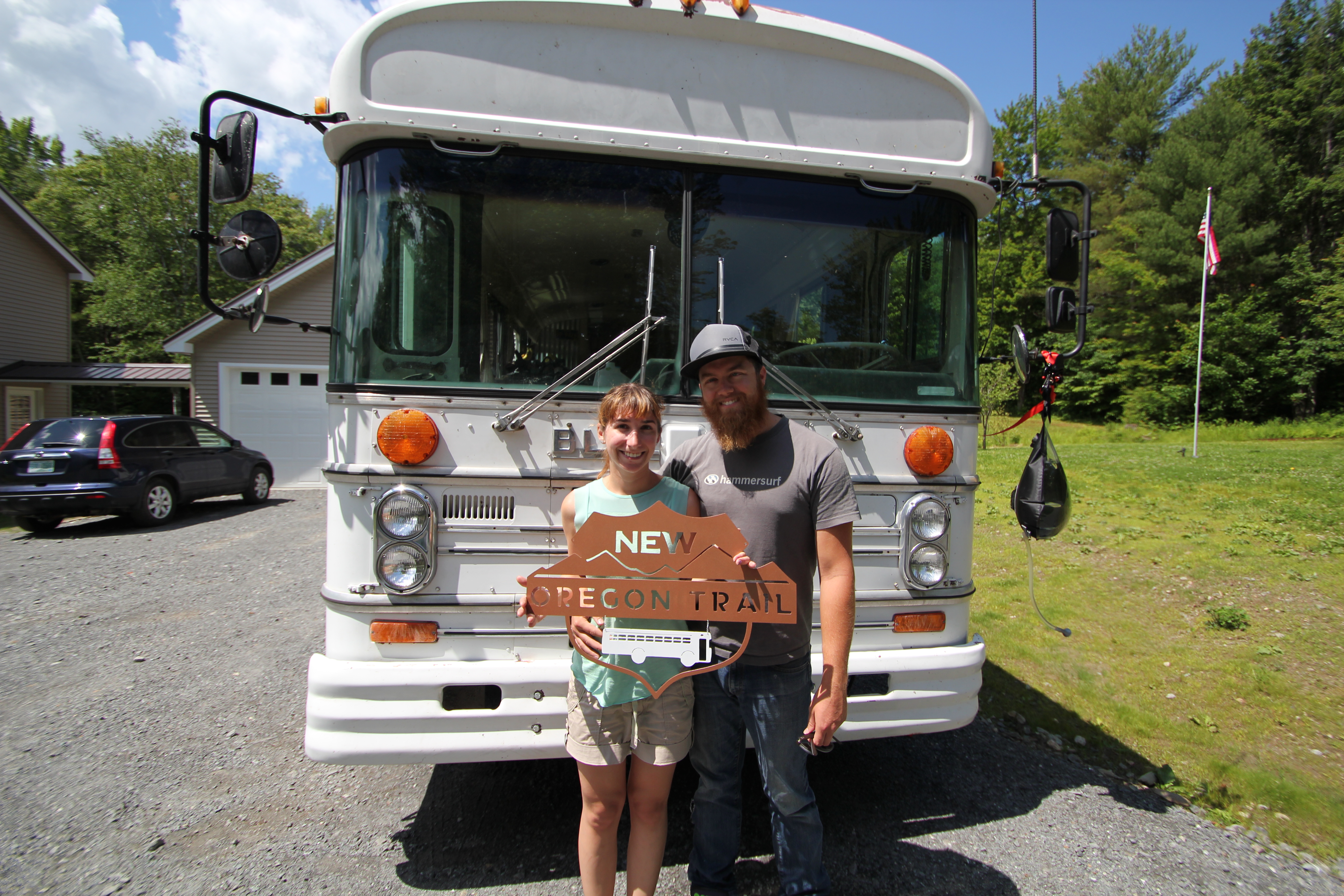 As we drove farther and farther up the coast, the air got cooler and the towns got smaller. We finally drove past the sign for Lubec, and soon after we were at the base of the bridge that lead to Canada. Driving up the bridge we were shocked to find the whole island shrouded in thick fog, from the top of the bridge you couldn’t even see the shoreline. It was such an eerie experience; it felt like we were driving over the bridge to another world. As we came down the far side the rocky coast came into view, and we stopped at the Canadian customs checkpoint. This is the part we were nervous about. What would they think of our weird old bus full of household items? We stopped at the booth and got out to talk to the officer in the window. He looked at our passports, asked a few questions about our visit, smirked at our bus, and let us on our way. No search, no interrogation. This was too easy! We rejoiced as we drove onto the island. Little did we know what we had in store for us the next time we tried to cross a Canadian border.